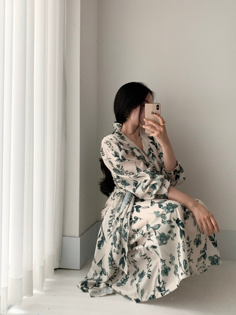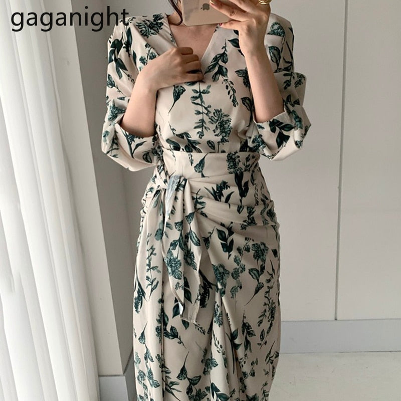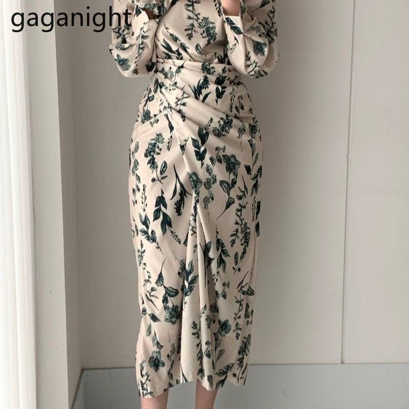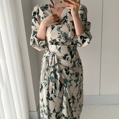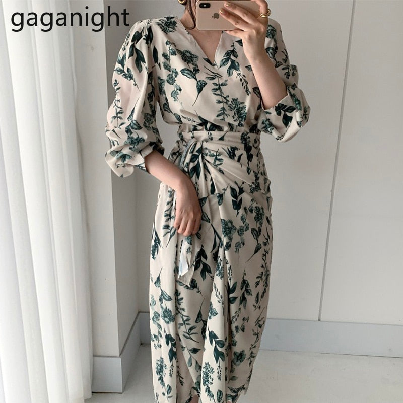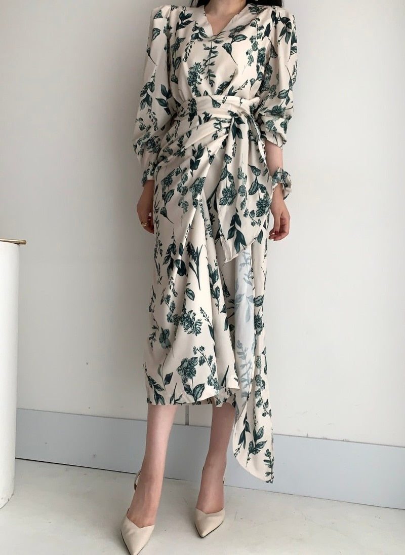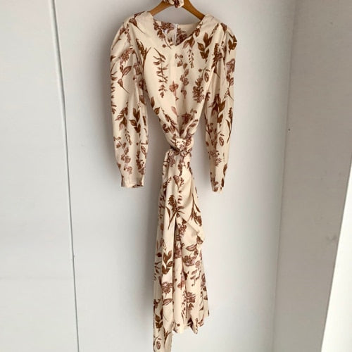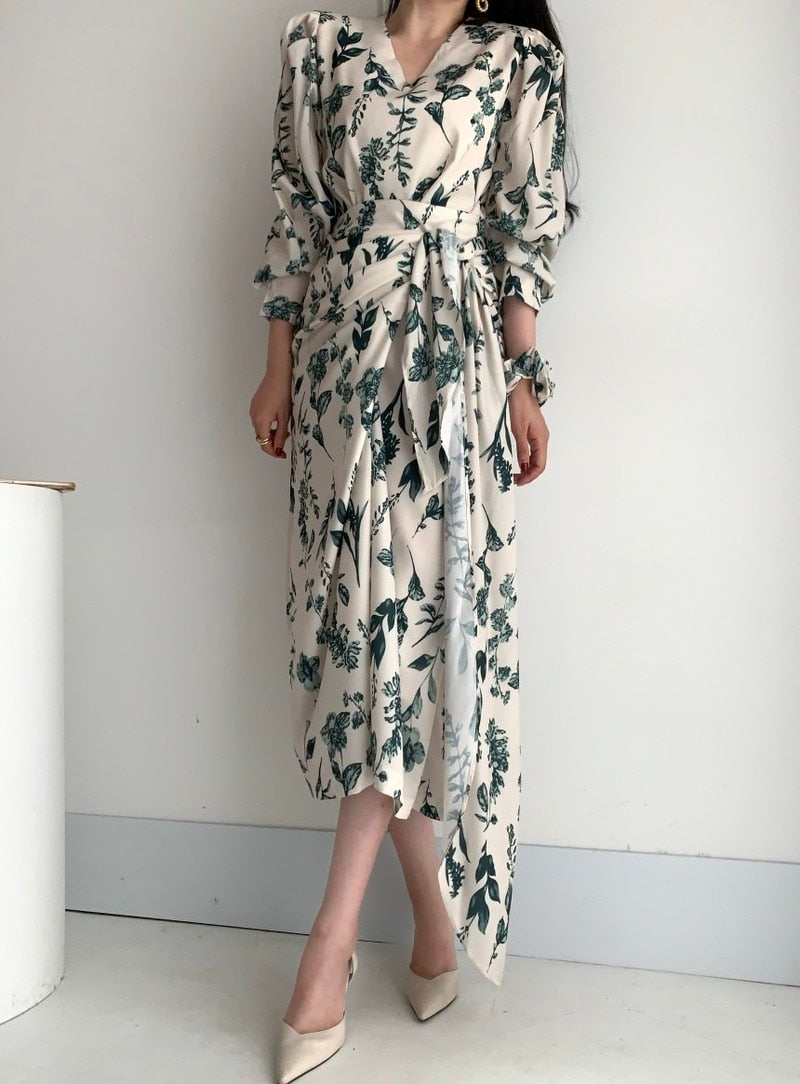 Chiffon Dress Elegant Puff Sleeve Puff Floral Print