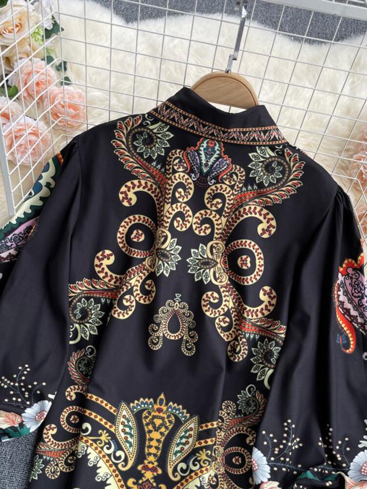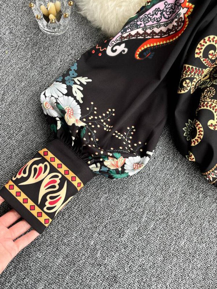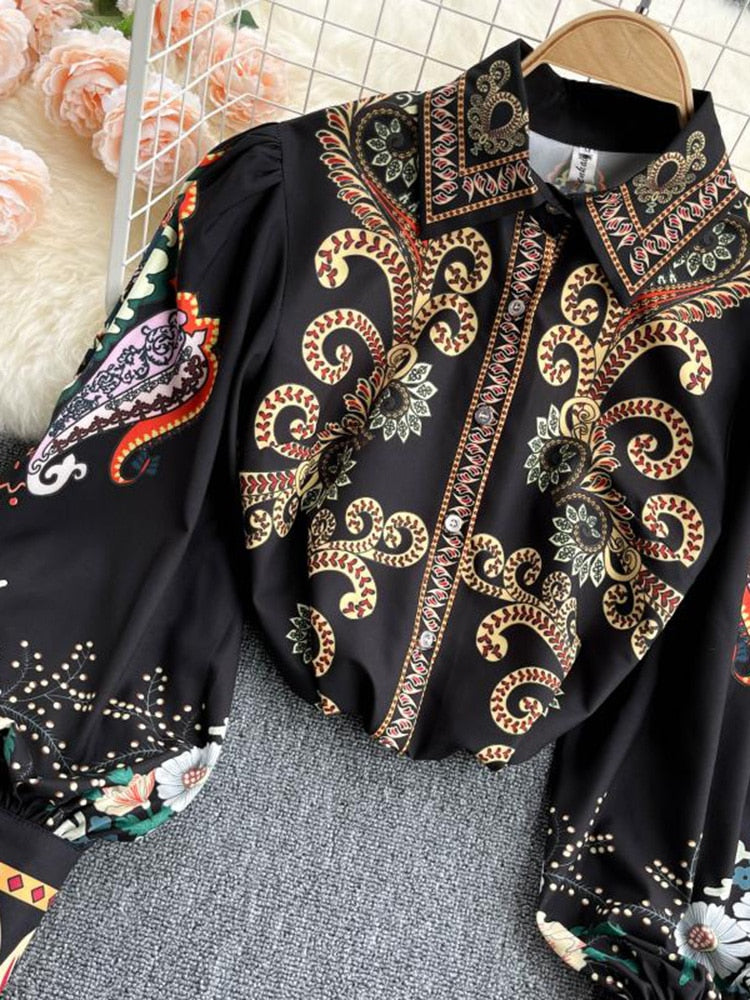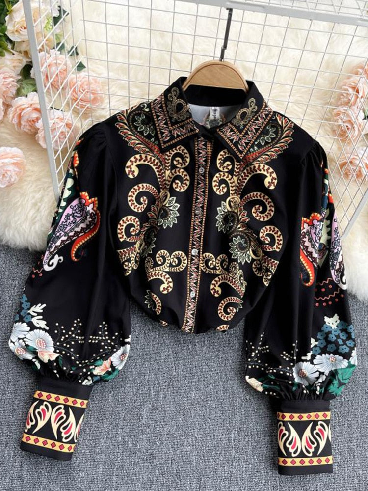 Fashionable women's blouse printed with lantern sleeves