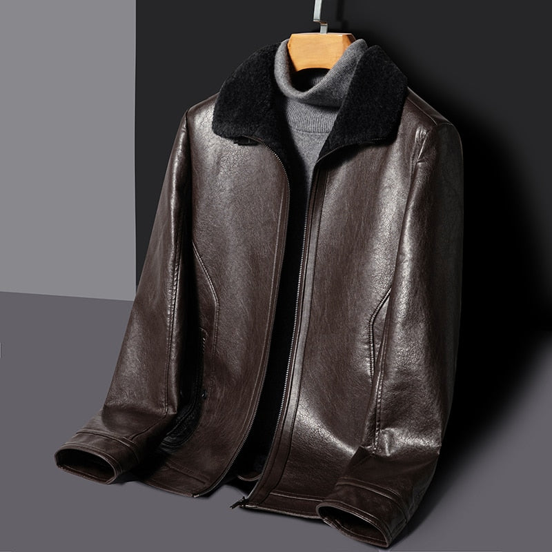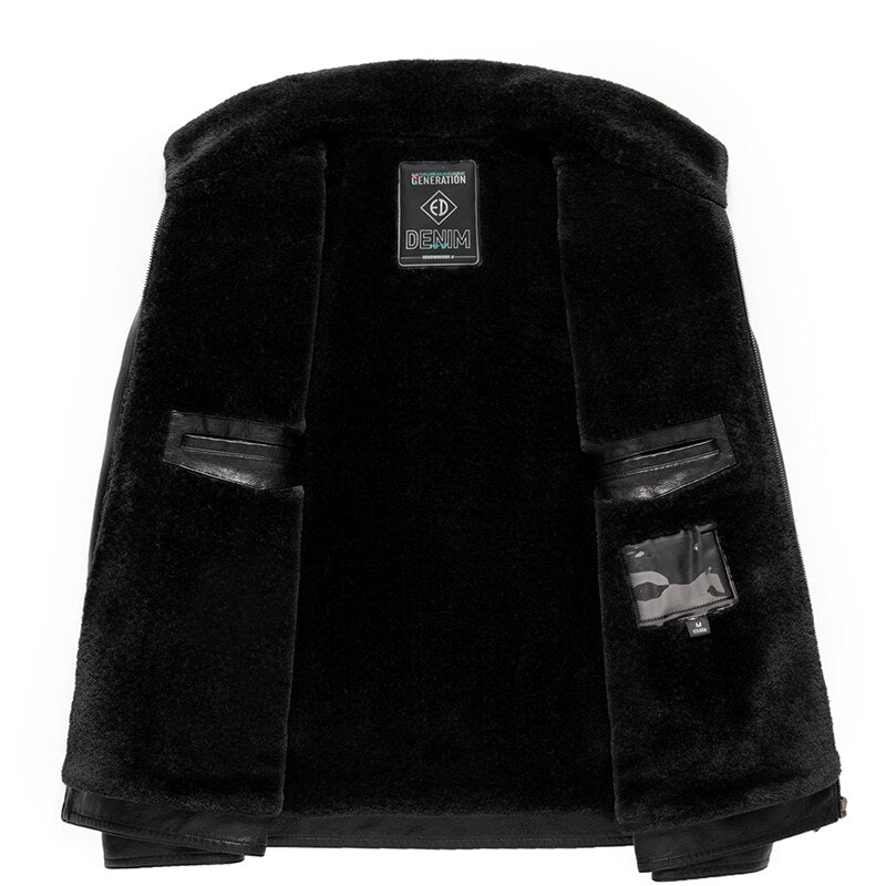 Autumn And Winter Men High-End Natural Leather Coat Lamb Fur Collar Jacket