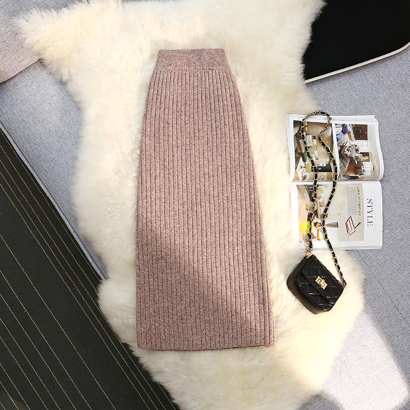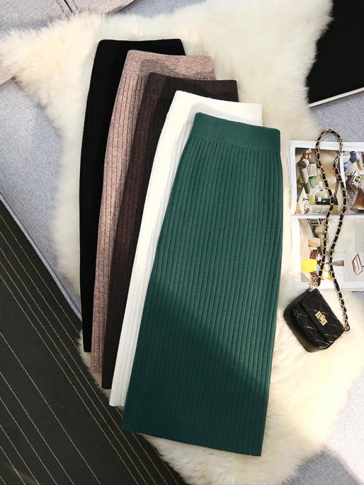 Skirt Women Autumn Winter Simple Style A-line Skirt Female Elegant Fashion High Waist Split Midi
