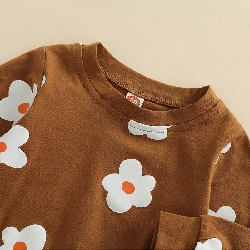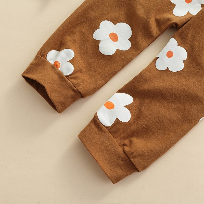 2Pcs Baby Girls Tracksuit, Flower Print O-Neck Long Sleeve Tops + Casual Pants for Toddler