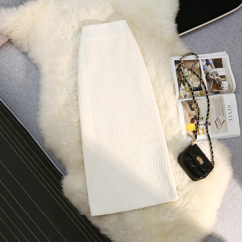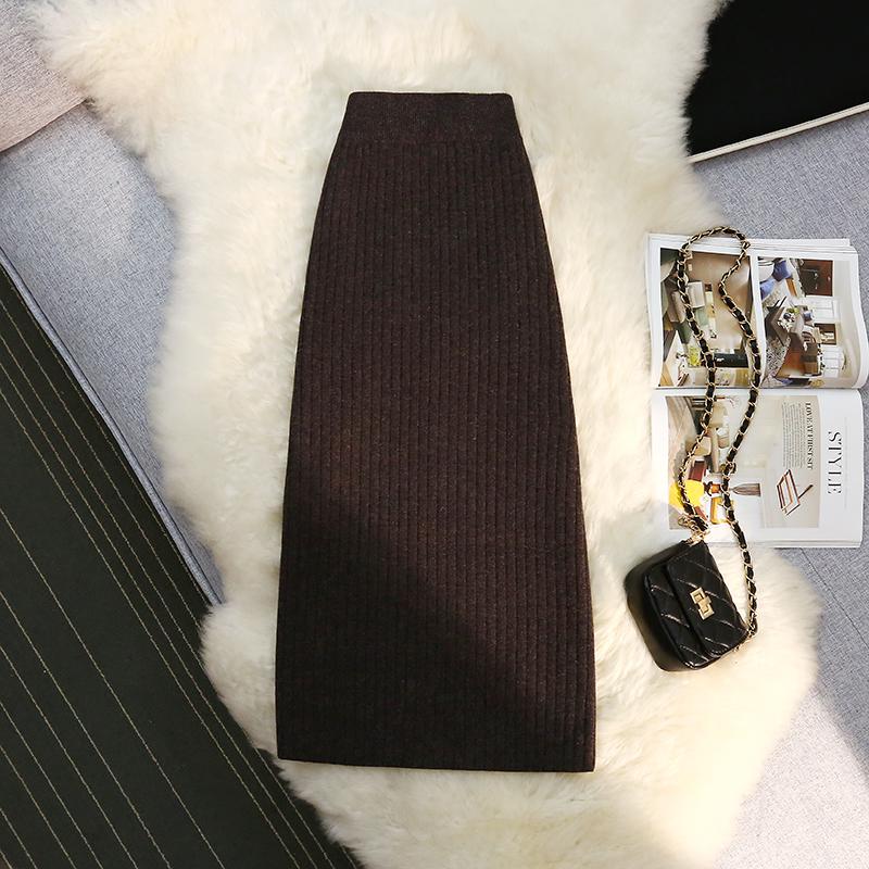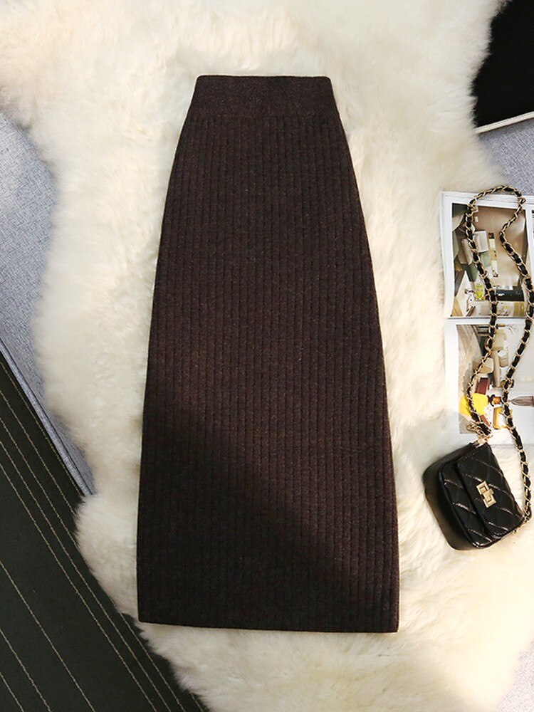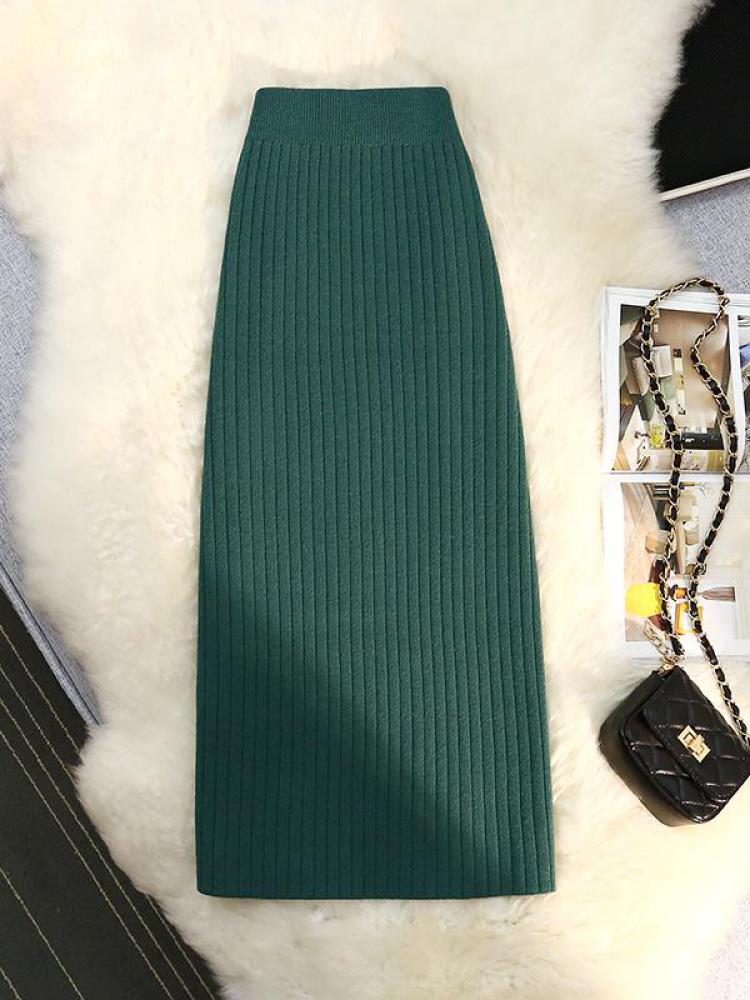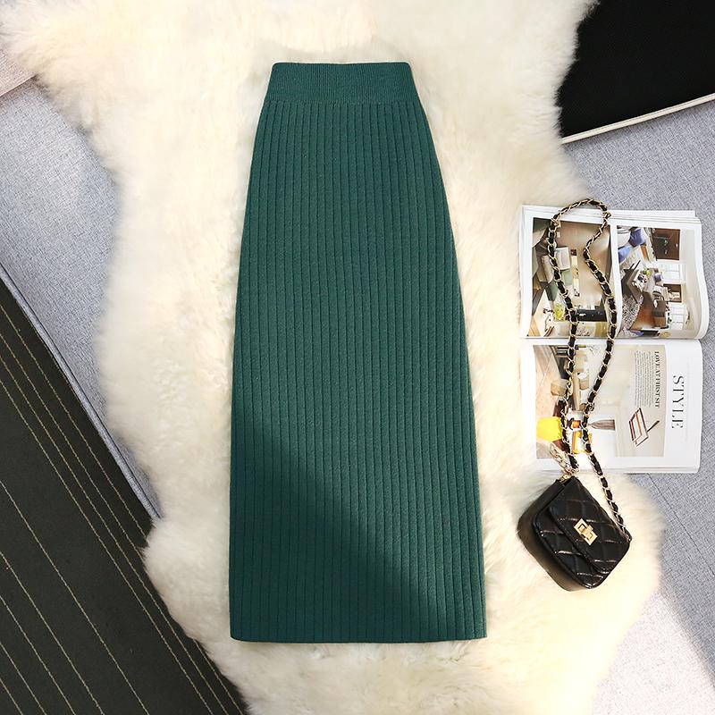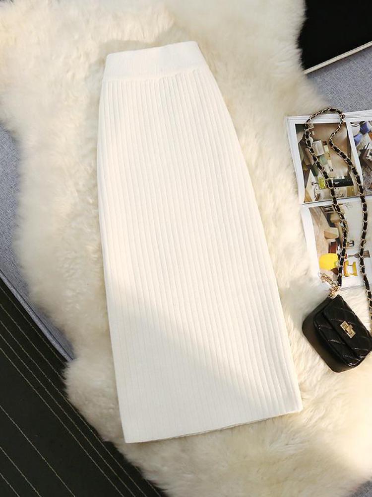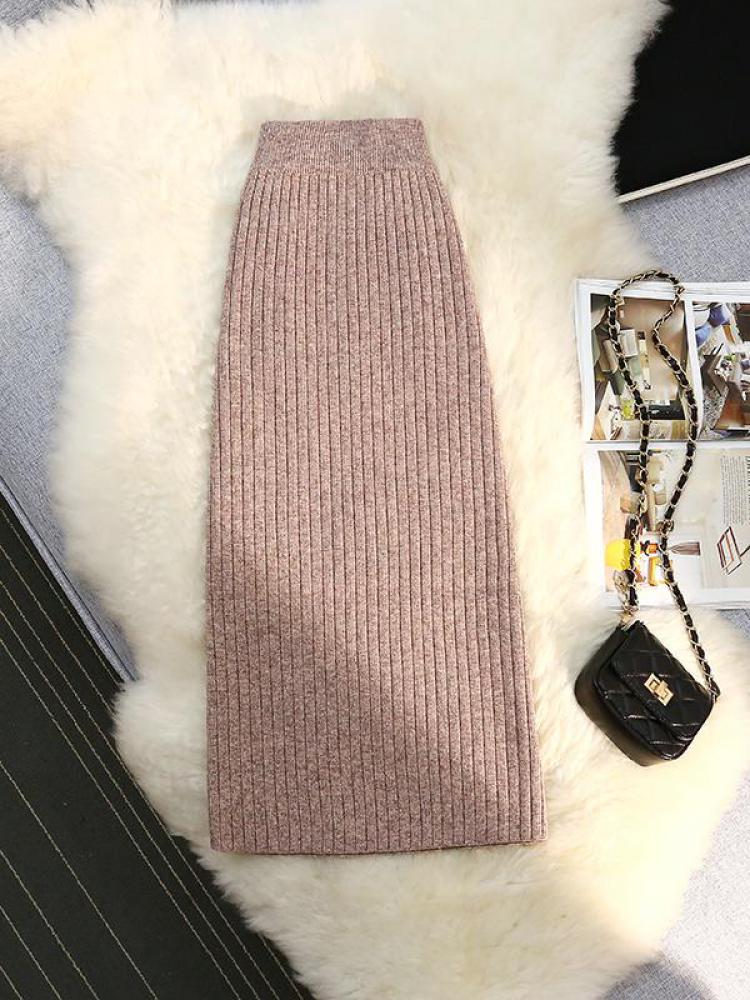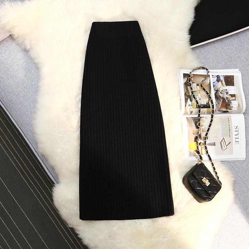 Skirt Women Autumn Winter Simple Style A-line Skirt Female Elegant Fashion High Waist Split Midi