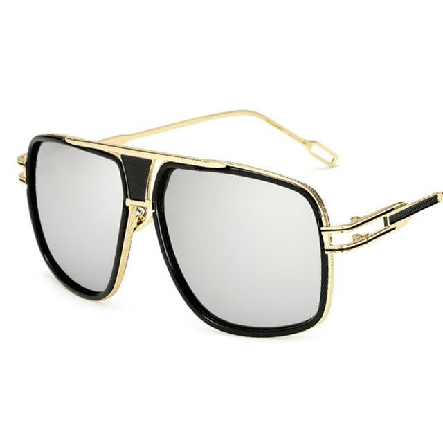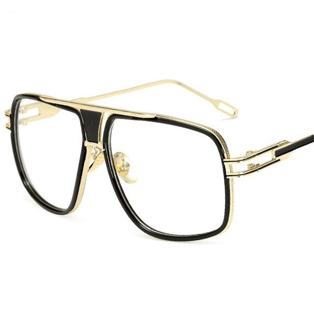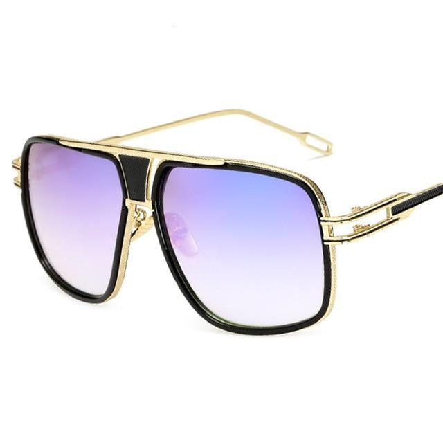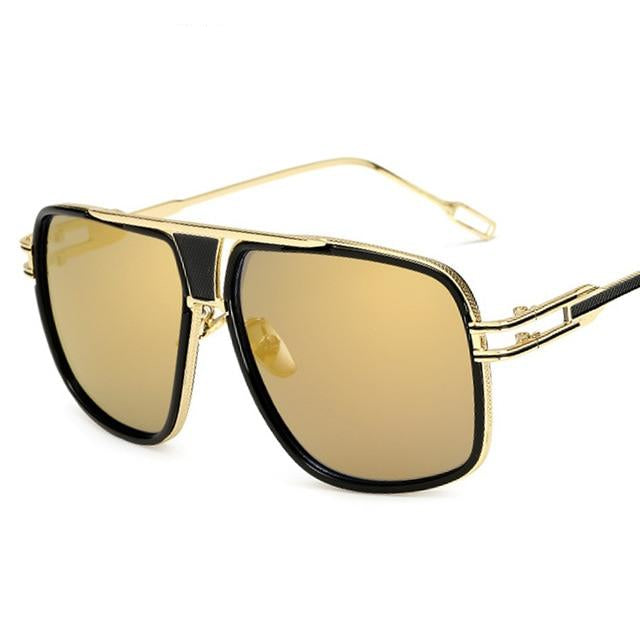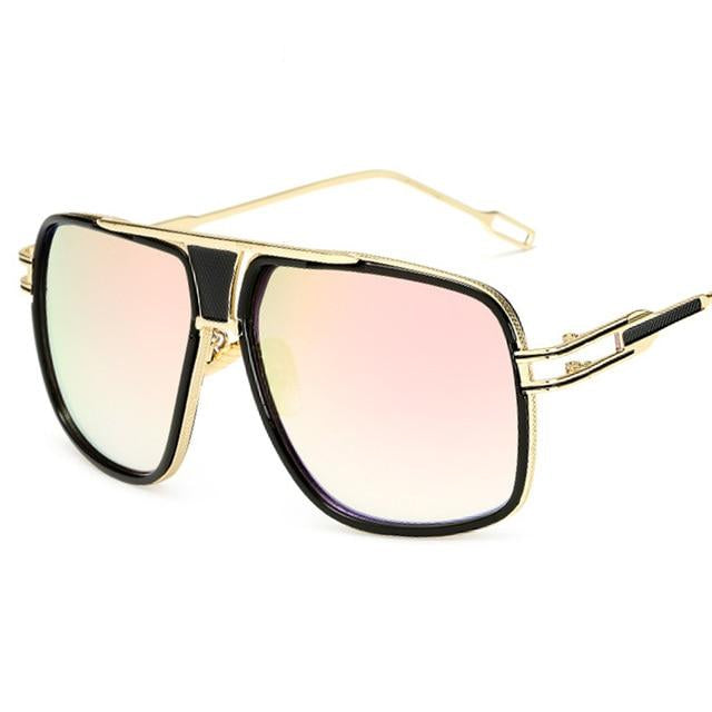 Unisex Gold Plated Square Men Sunglasses Women Couple Flat Top Luxury