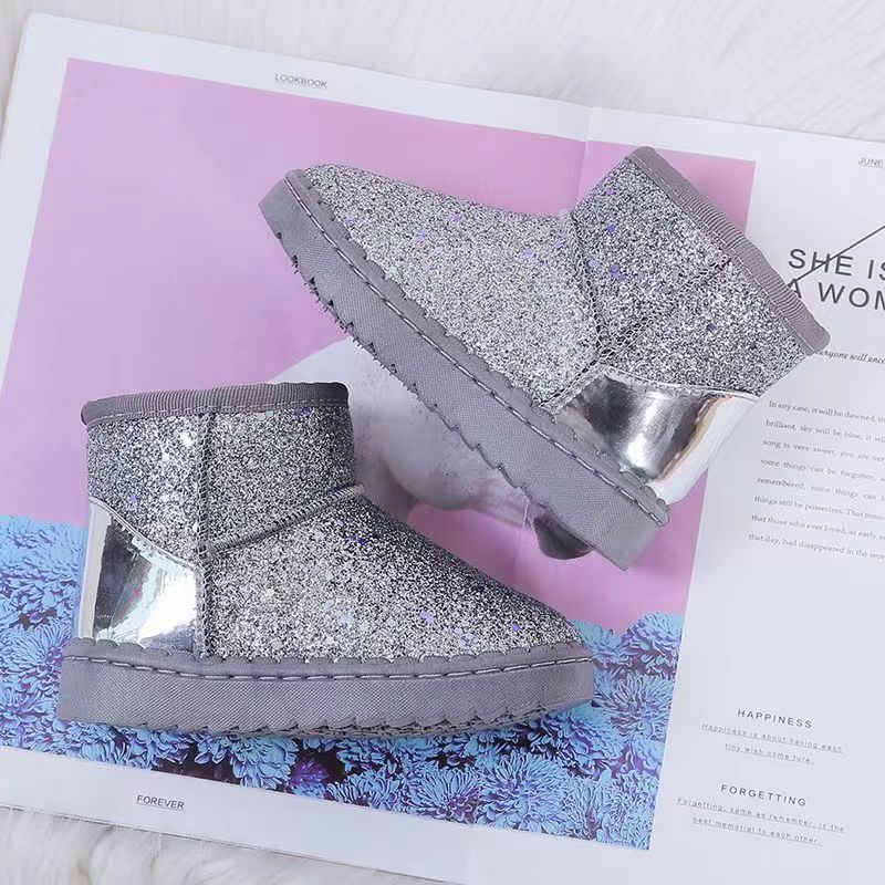 Children's warm snow boots embroidered thick cotton velvet boots thermal ankle boots