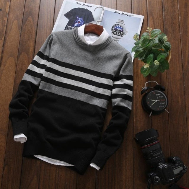 Warm Patchwork Round Collar Cotton Casual Wool Pullovers Mens