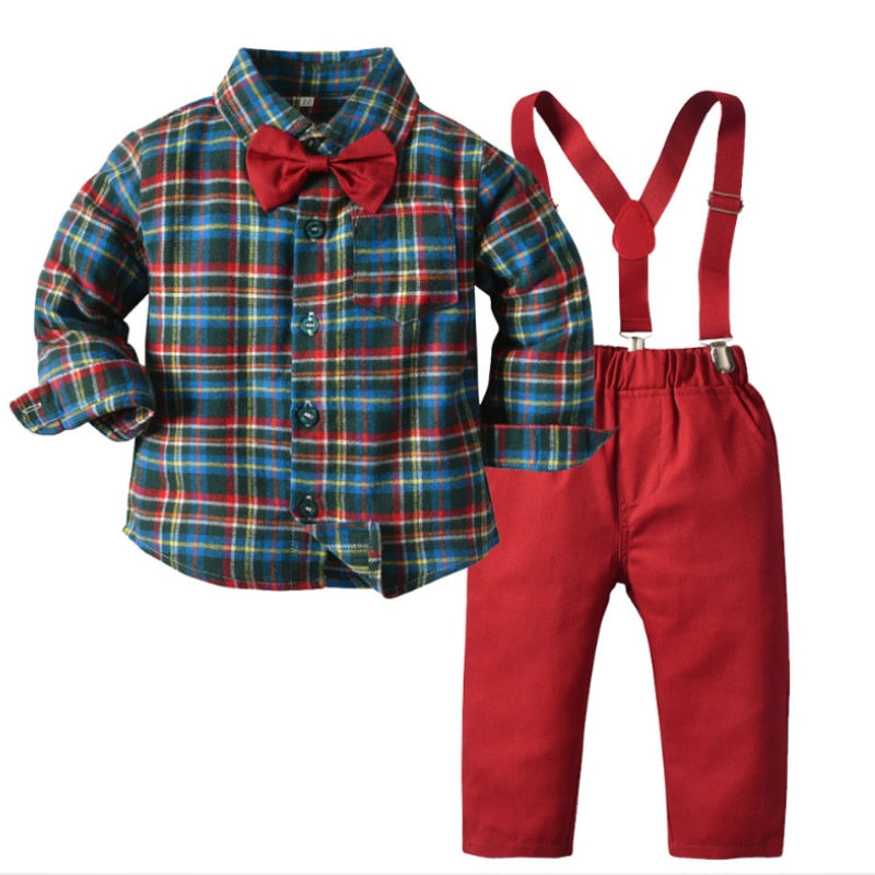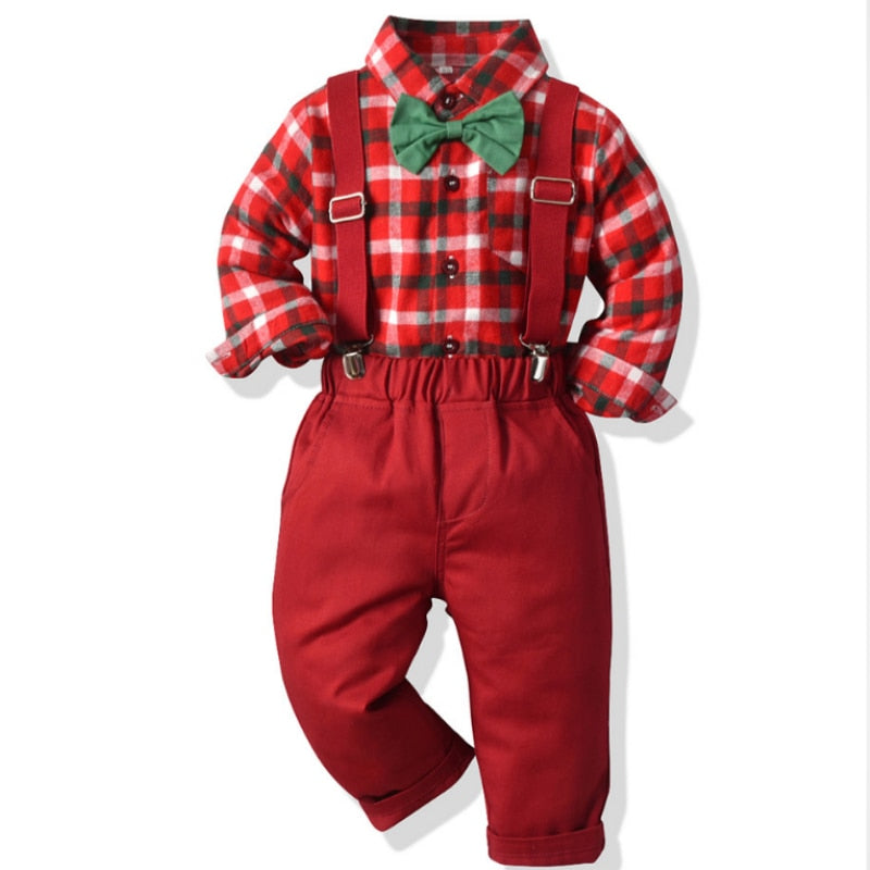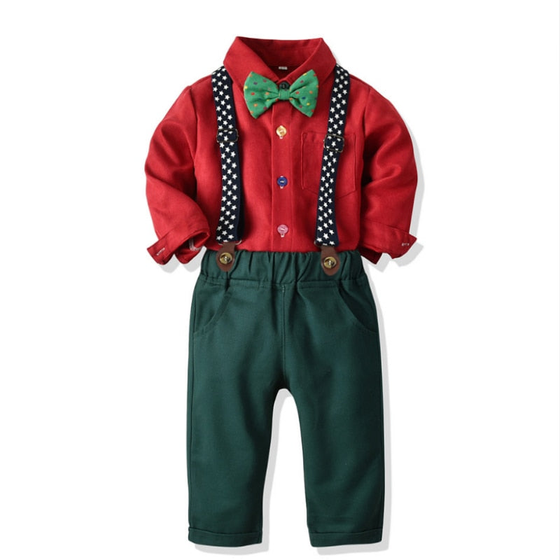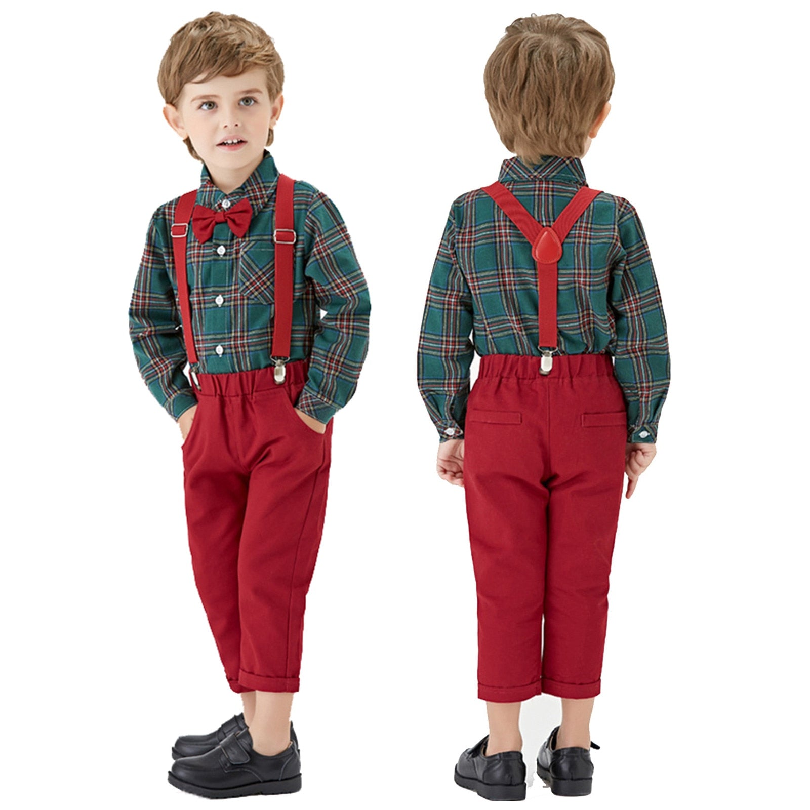 Top and Top Toddler Boys Clothing Set Autumn Winter Children Formal Shirt Tops+Suspender Pants 2PCS Suit Kids Christmas Outfits