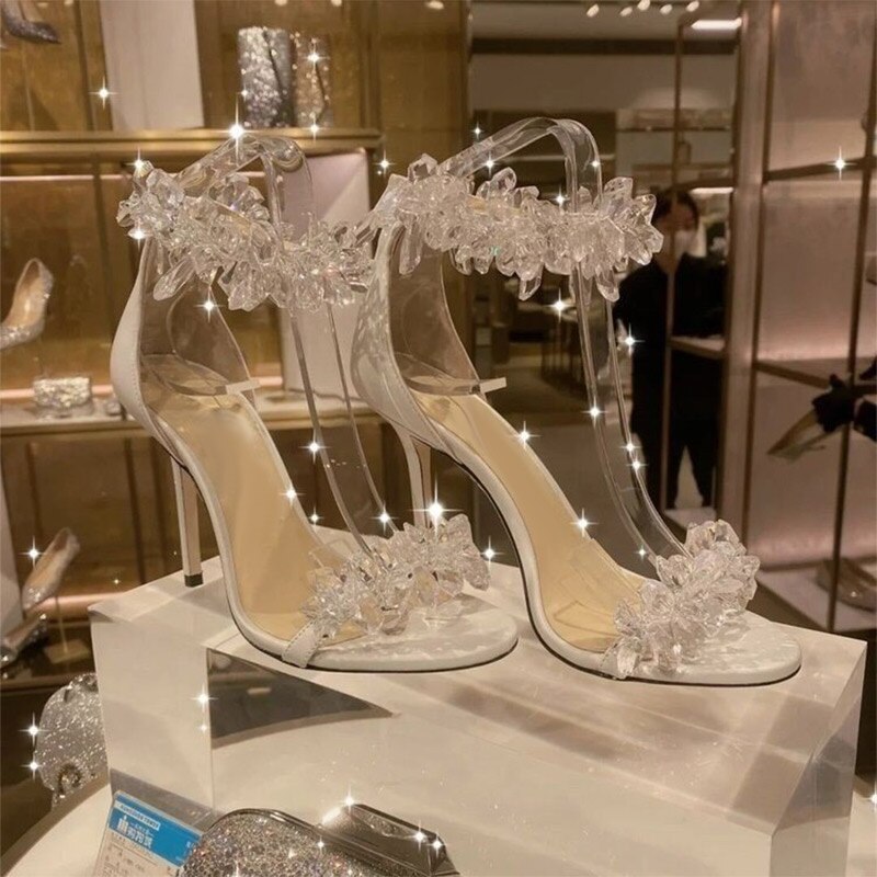 New fashion women's sandals for ladies comfortable shoes rhinestone high heels with glitter flower