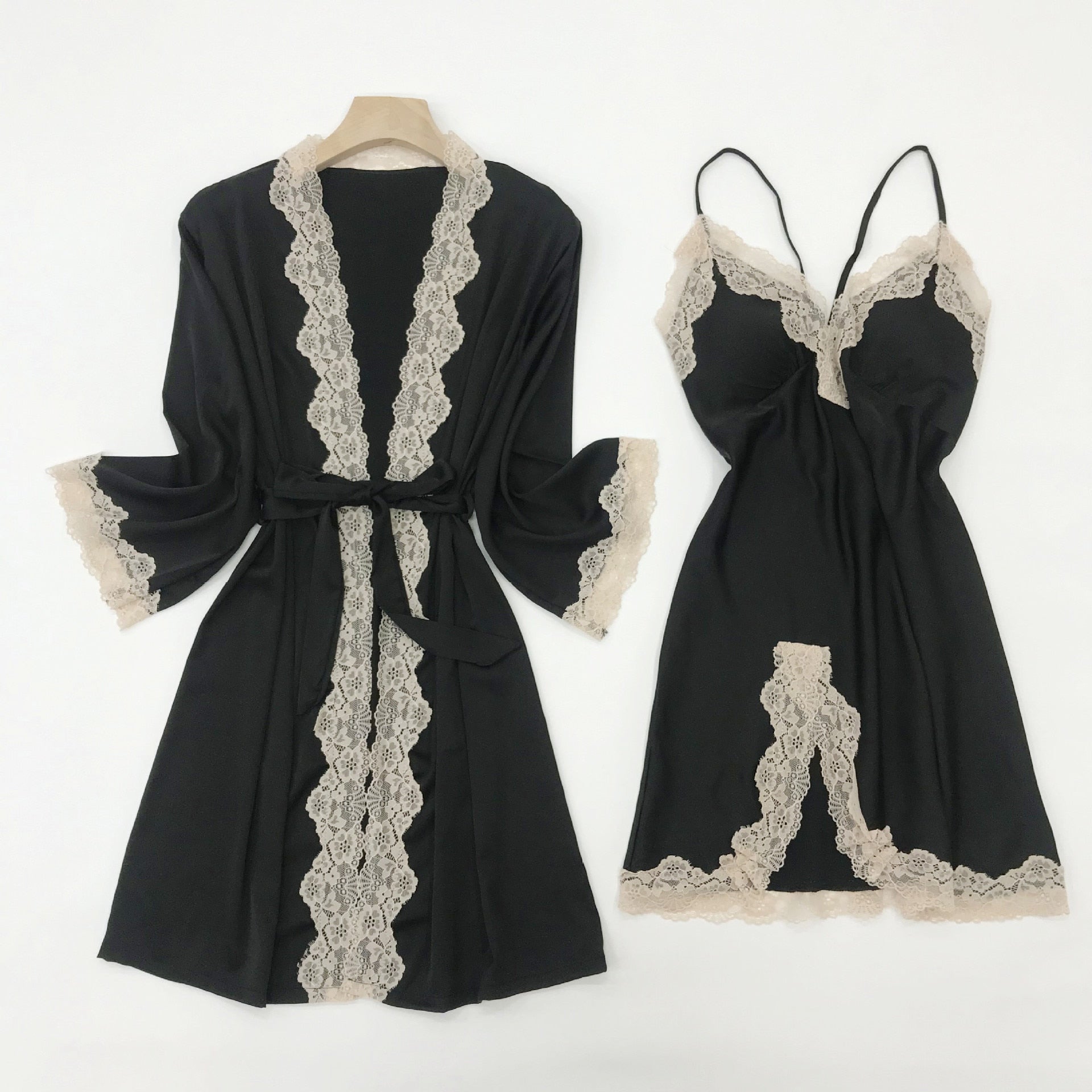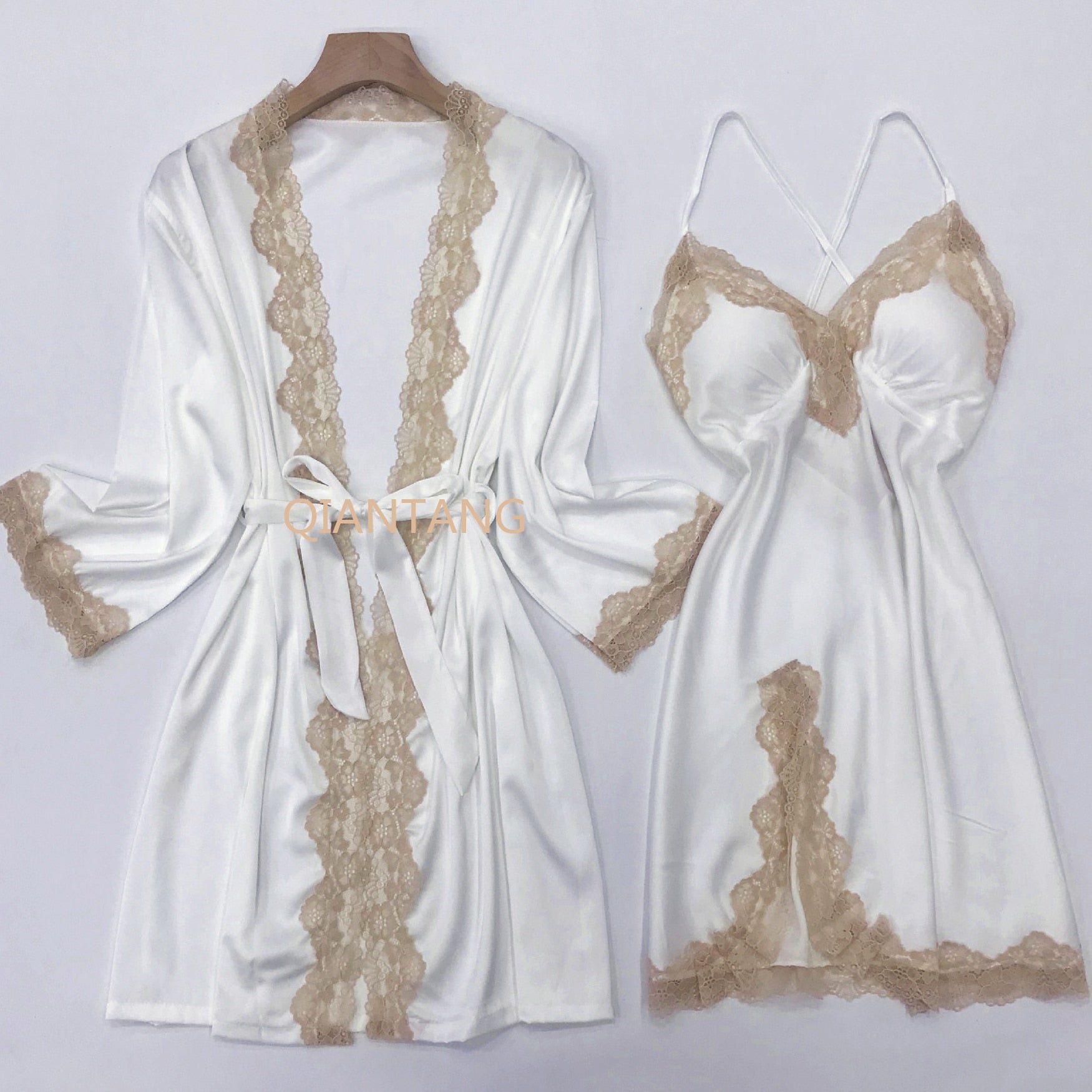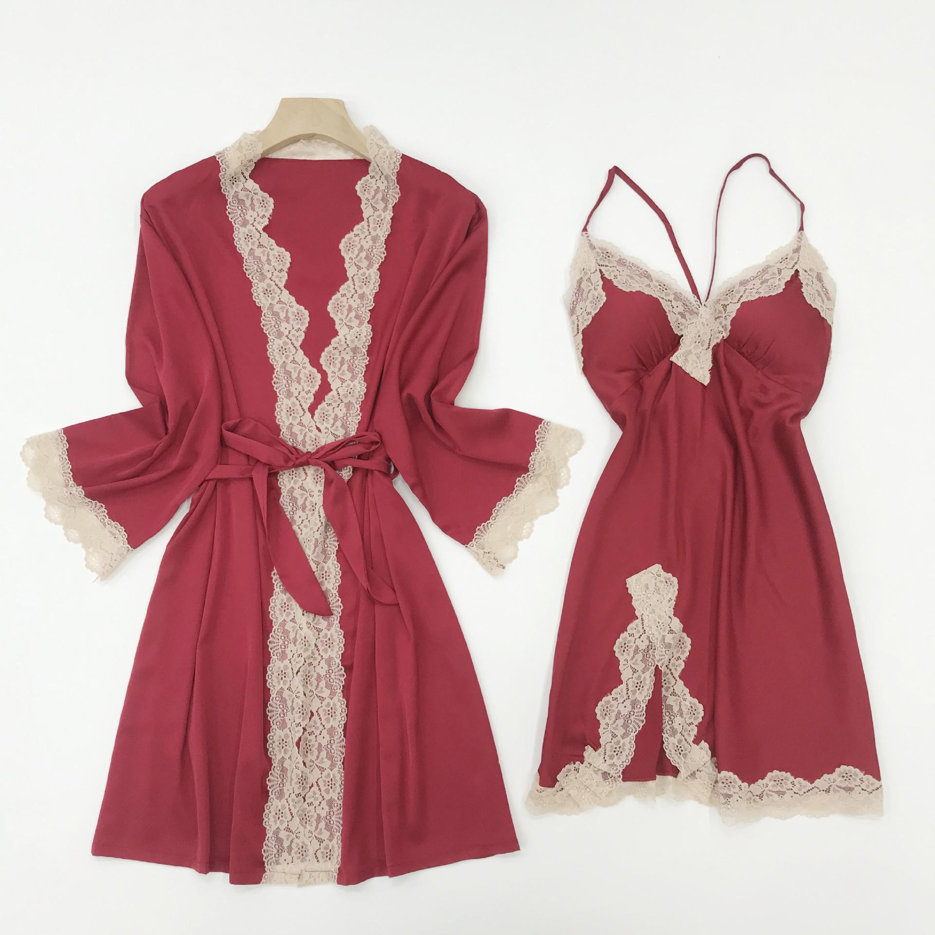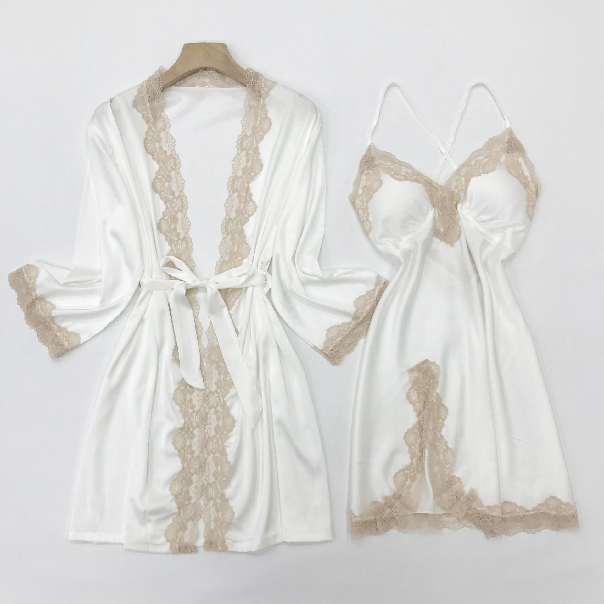 Satin kimono and gown for women with lace trim