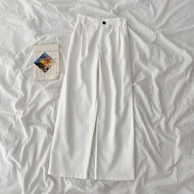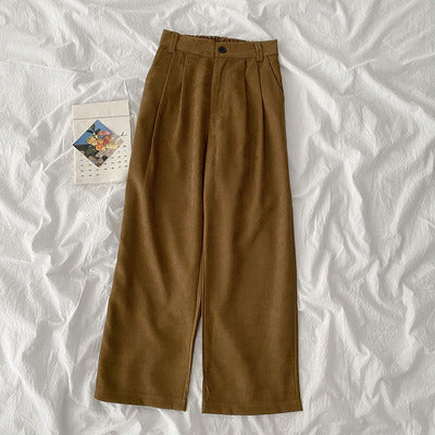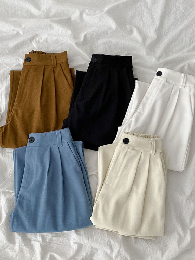 Pantalón de mujer de pierna ancha con cintura alta, el material es algodón y lino