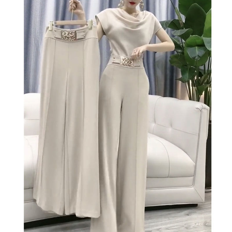 Ladies Casual Wide Leg Pants Set Women Work Matching Trousers Two Piece Set