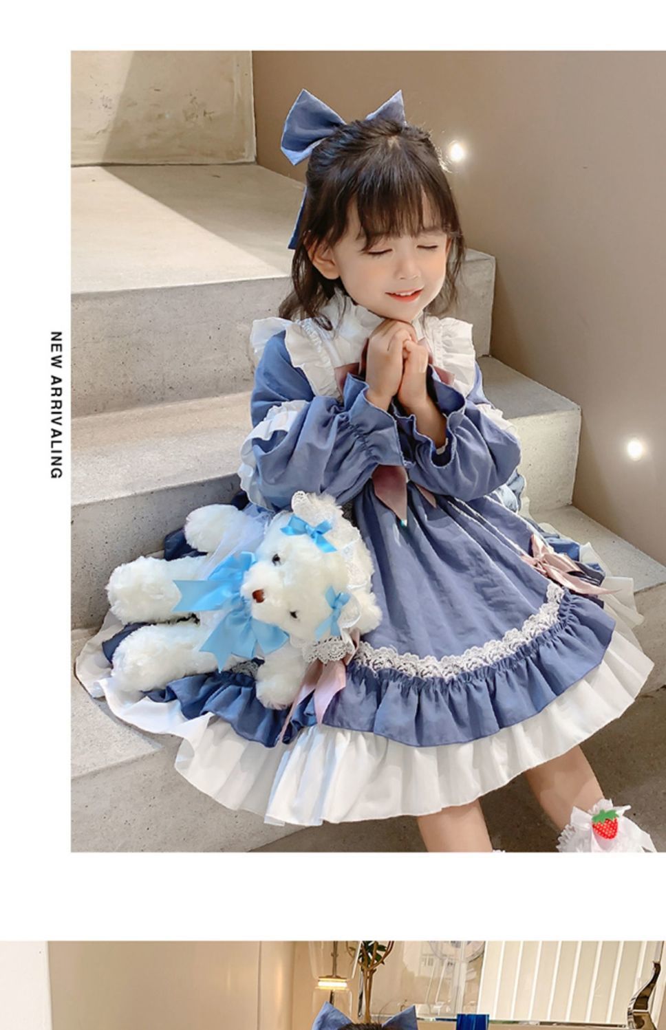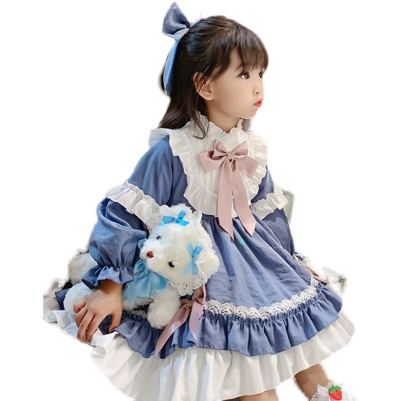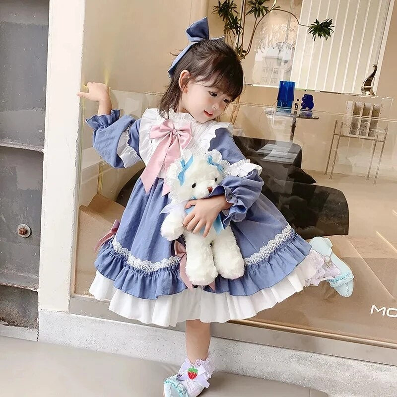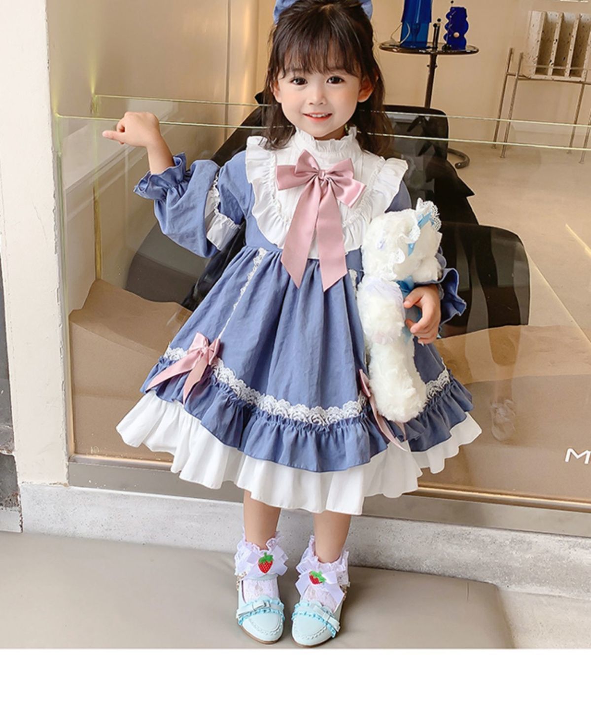 Lolita Style Blue Bow Pleated Baby Dress Princess Party Dress For Girls