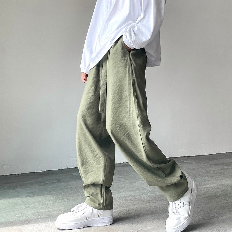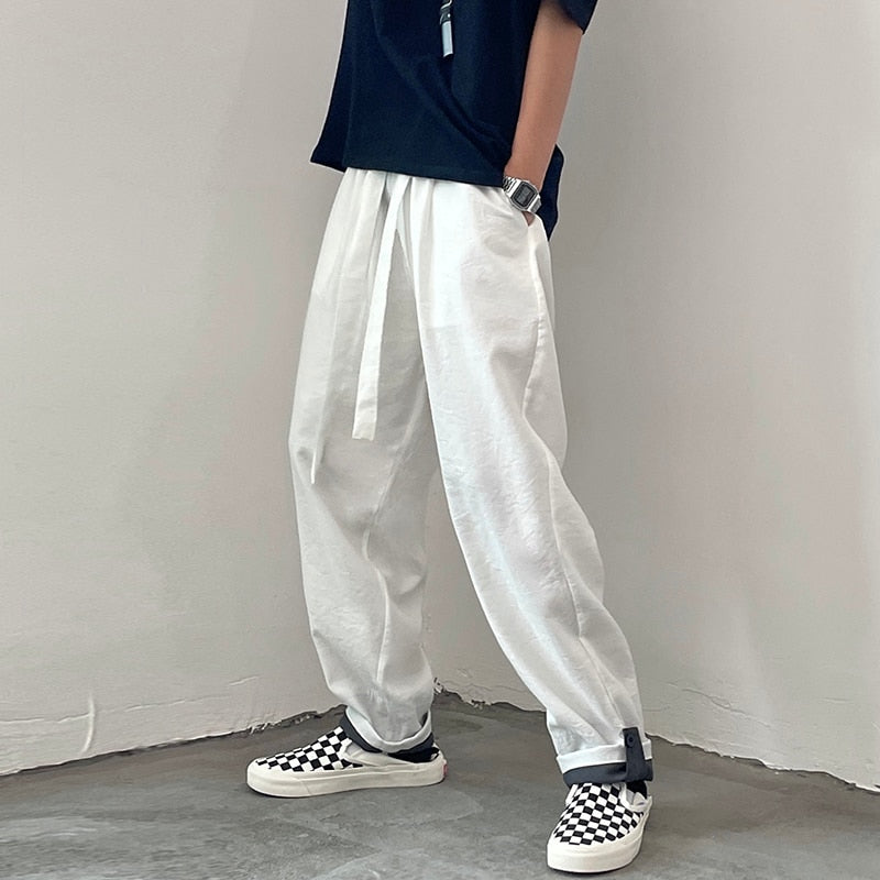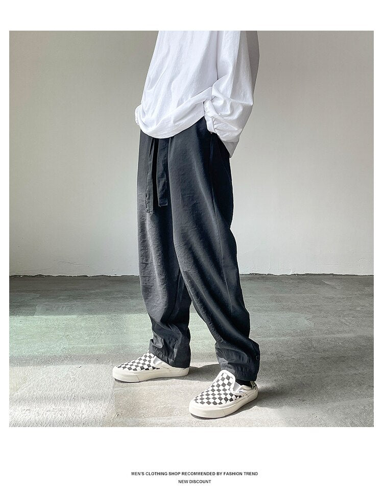 Men Harem Pants Fiber Solid Baggy Loose Casual Trousers