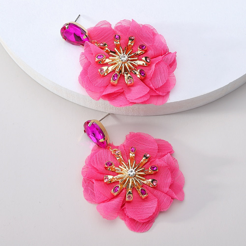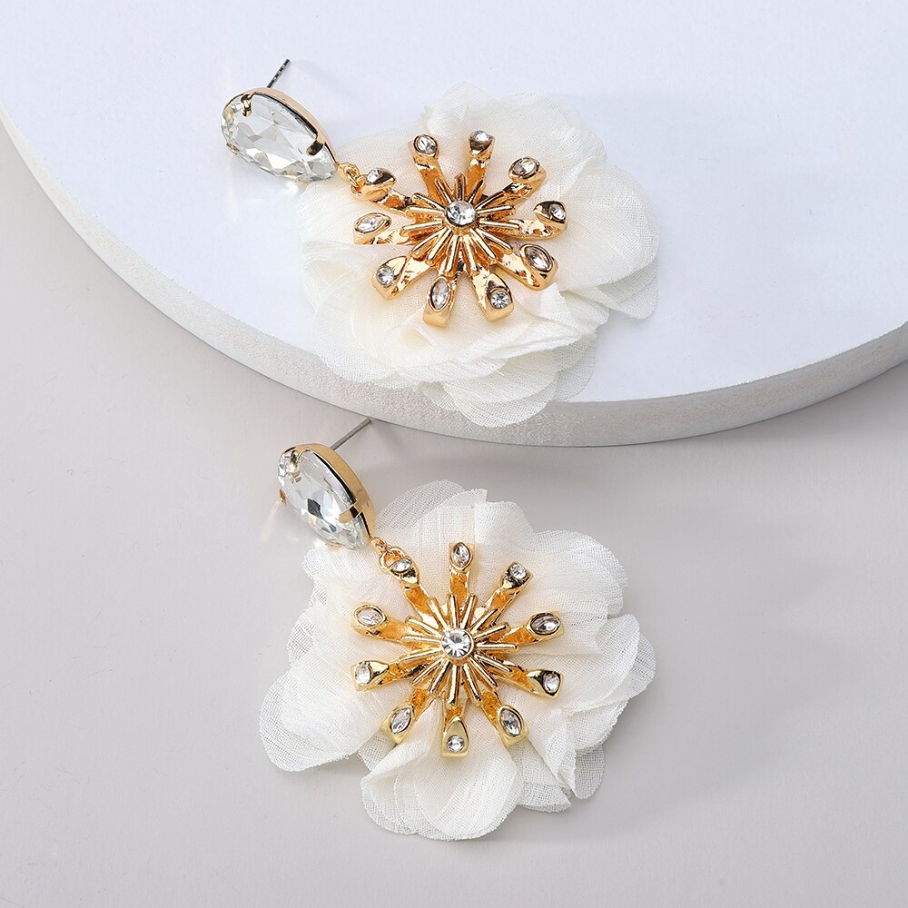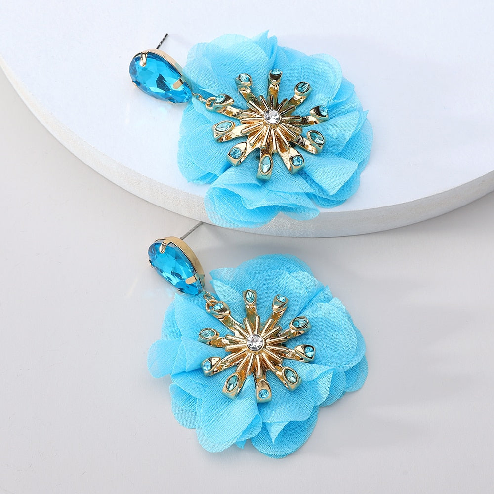 Large flower shaped hanging dangle earrings for women girls with fancy lace design