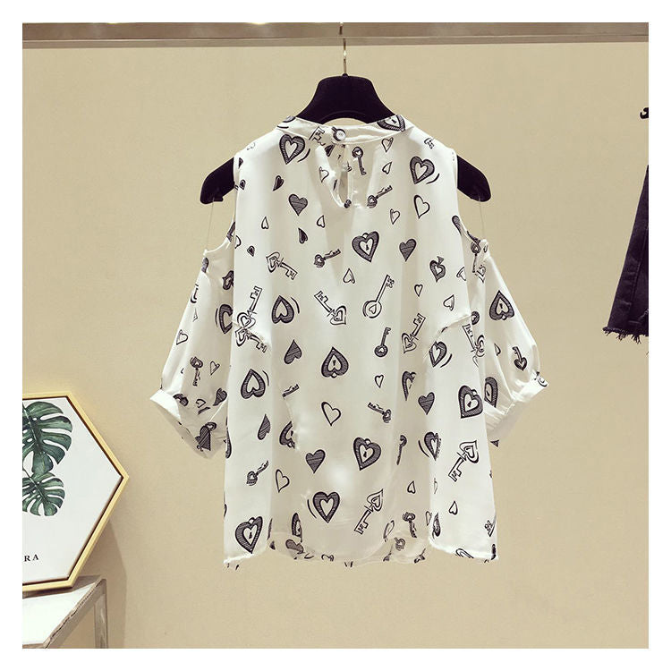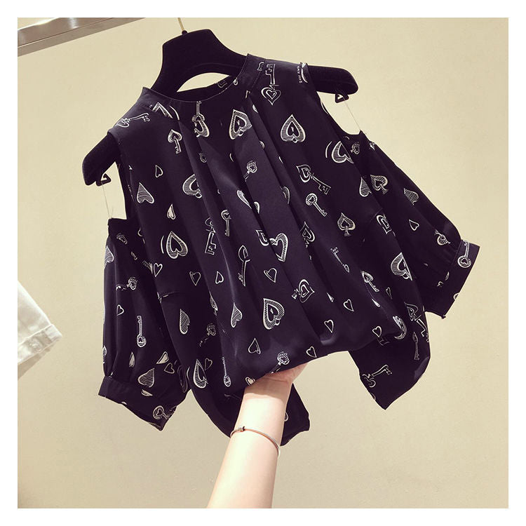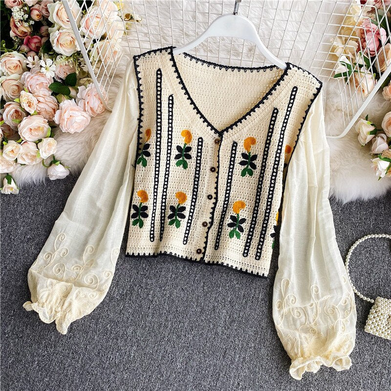 Embroidery V-neck Long Shirt Temperament Sweet and Wild Short Blous