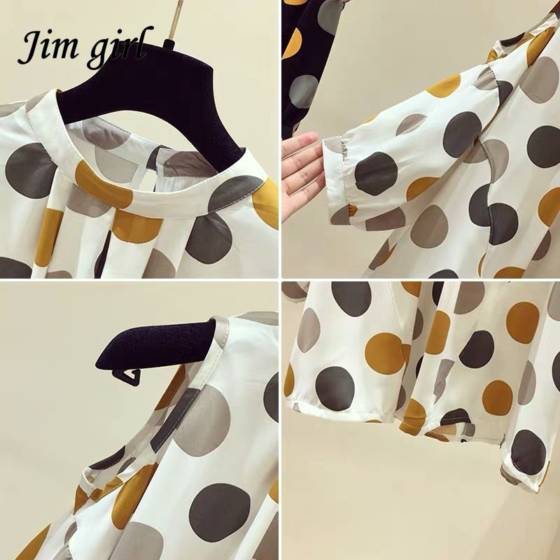 Women Blouse Long Sleeve Turn-Down Collar Office Chiffon Shirt