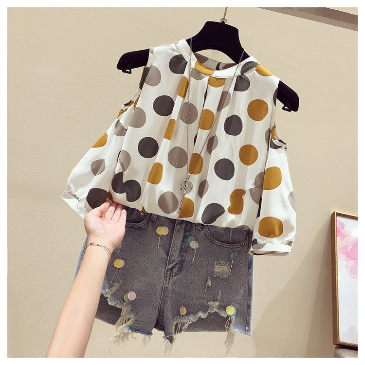 Bubble Sleeve Loose Denim Camisole Two-piece Suit Blouse Women