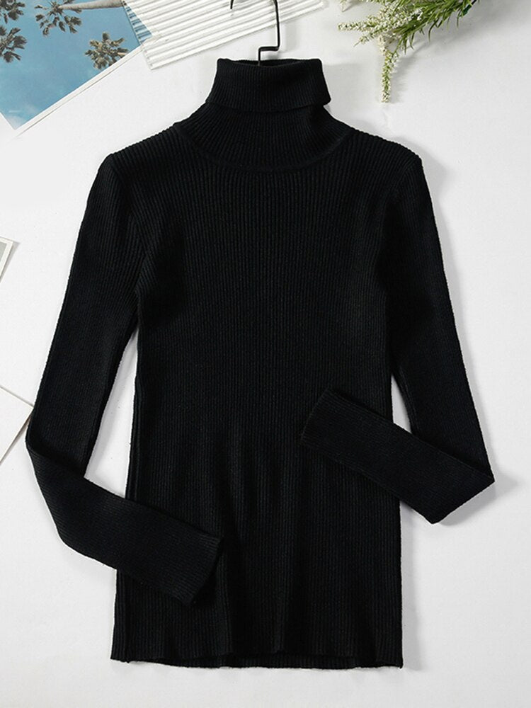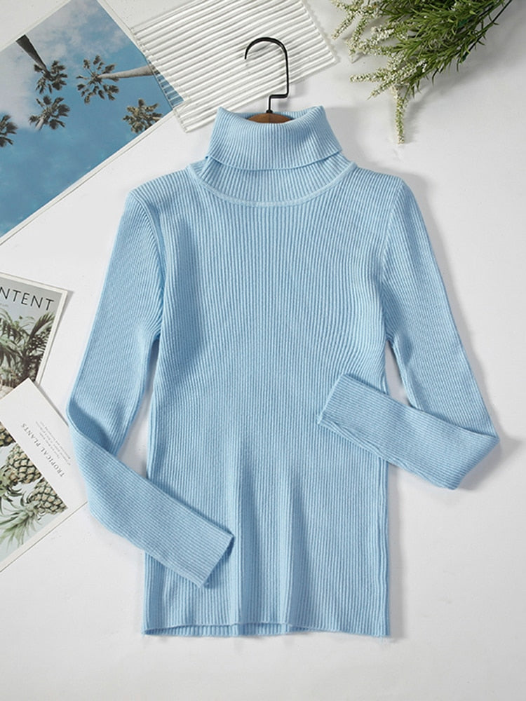 Simple Women Turtleneck Sweater Winter Fashion Elastic Knit Ladies Jumper Casual