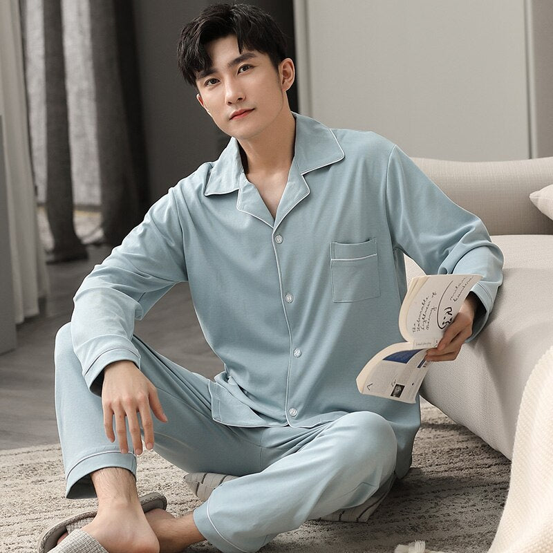 100% Cotton Pajamas Winter Men Sleepwear Nightwear Pijama Hombre Home