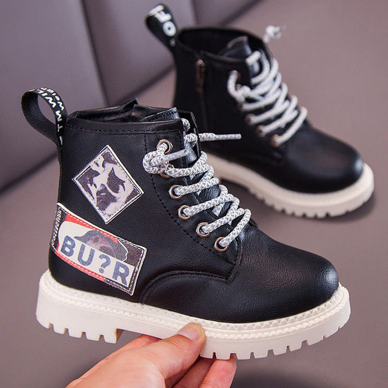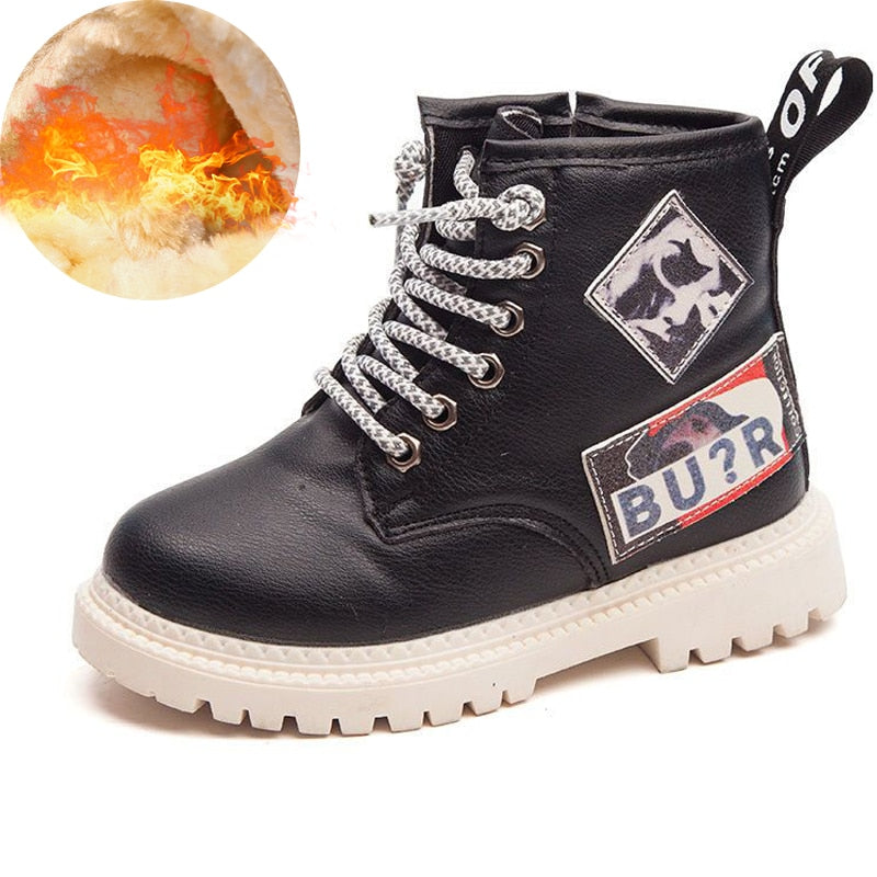 Kids Winter Boots Casual Warm Plush Boys Boots Non-slip Ankle Zip Boots