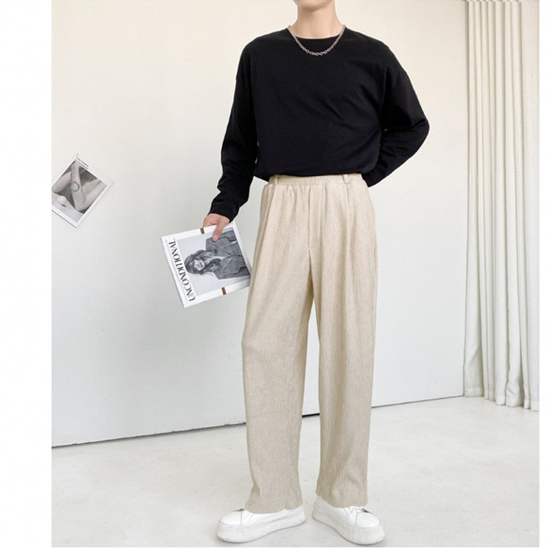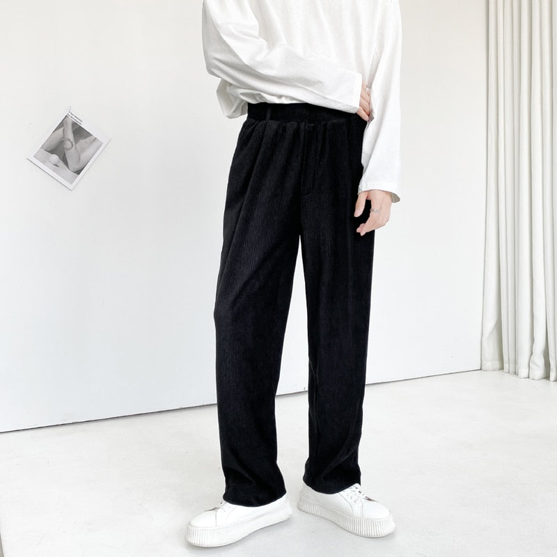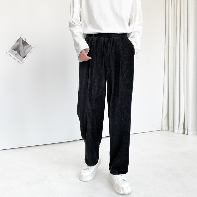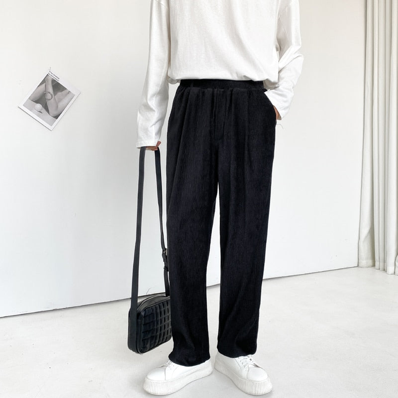 Autumn Winter Men Straight Pants Over Fit Casual Trousers