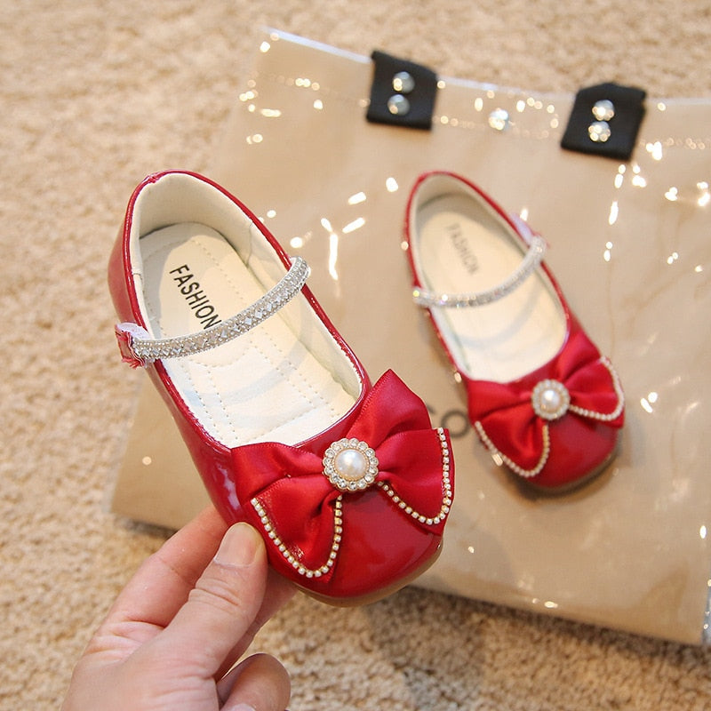 Children's shoes fashion bow rhinestone sequins kids shoes baby girls flat leather shoes